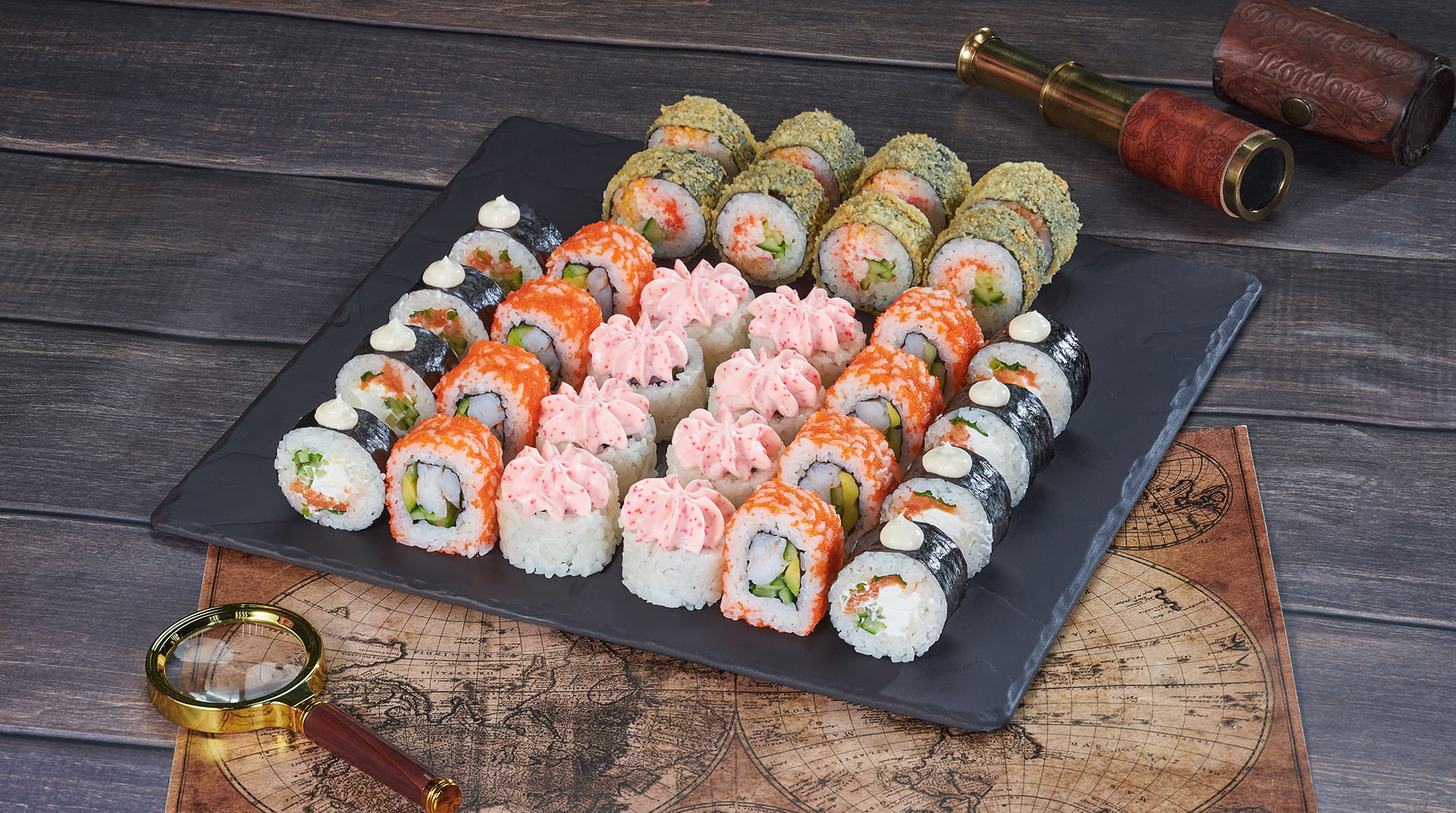 Состав: Ролл Фудзияма фреш (8 шт.), ролл Калифорнийская креветка (8 шт.), ролл Филадельфия Таманеги (8 шт.), ролл Калифорния Хот (8 шт.) *Не забудьте заказать имбирь, васаби и соевый соус. Они не входят в стоимость заказа.